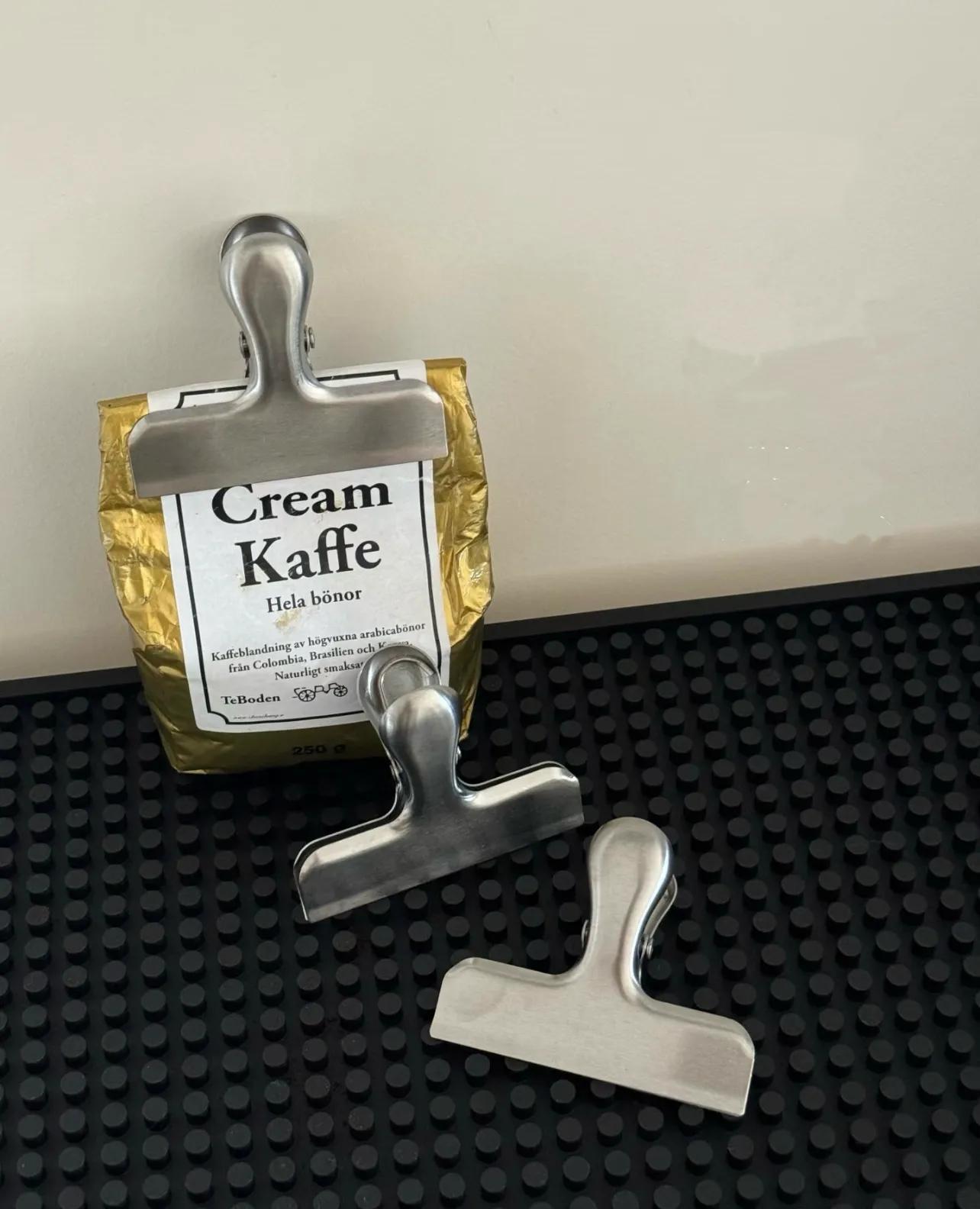 這種零食夾的咬合力不用多說,夾在袋子上密封性是真的好。而且“大小通喫”,各種尺寸的零食袋都能夾。顏色也銀亮亮的,很高級,材質更是抗造。