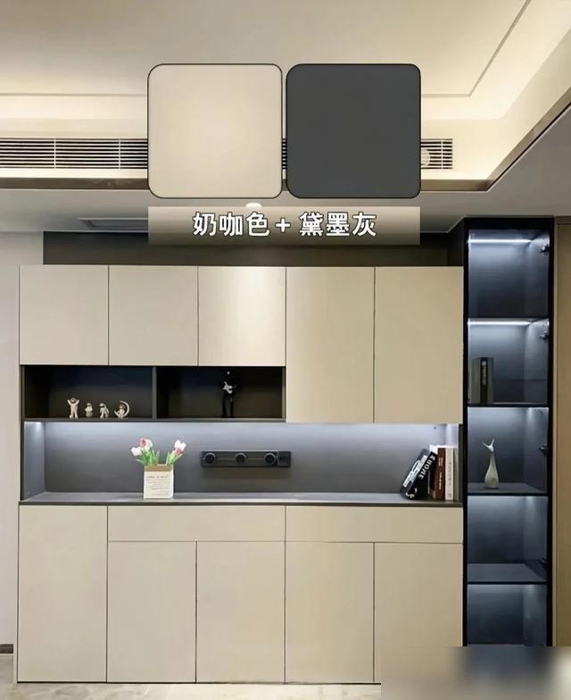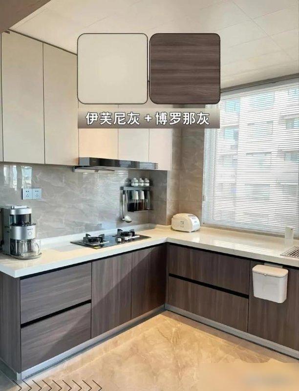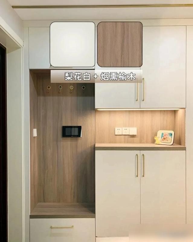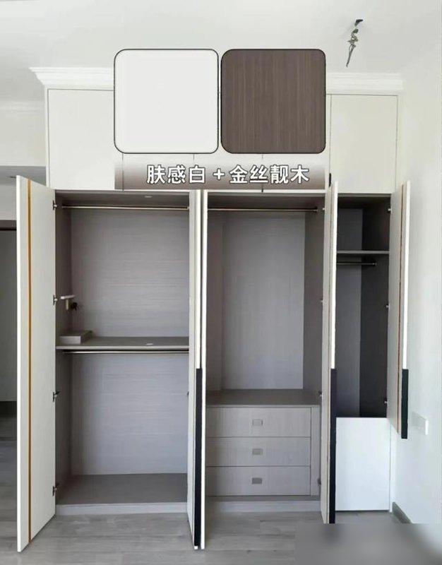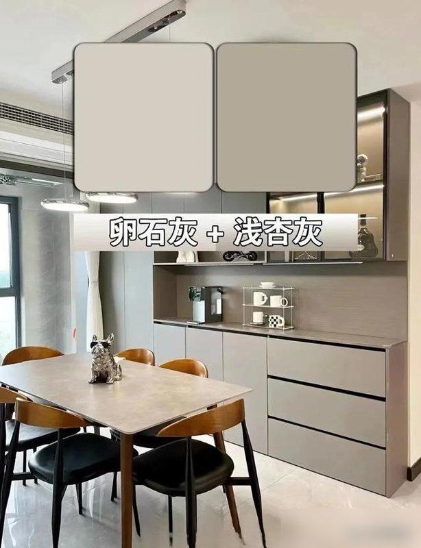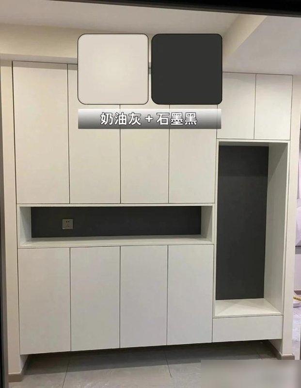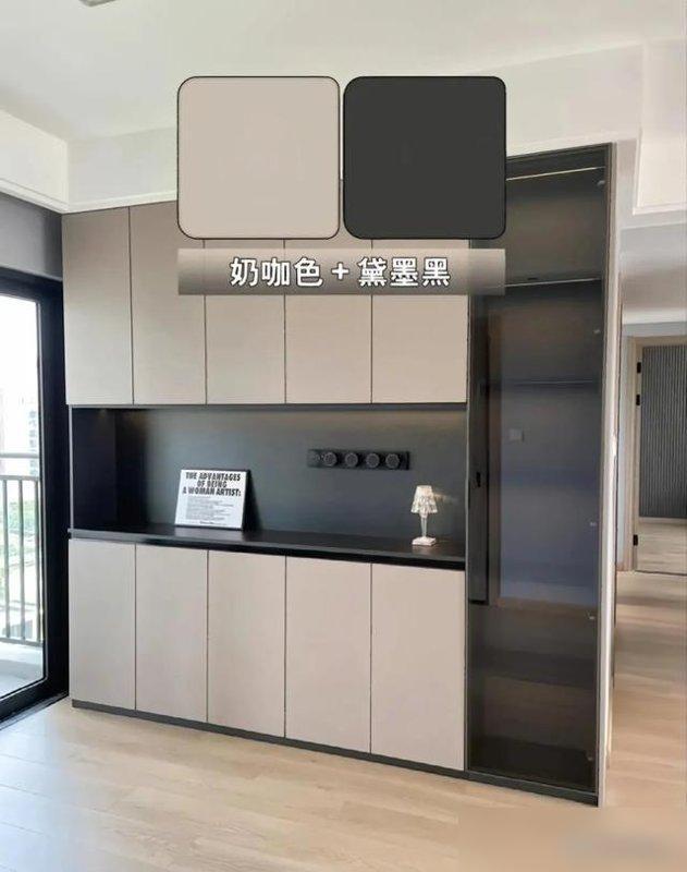我另一個朋友小夏就聰明多了,她裝房子時沒急着定設計,先啃了半個月“顏色搭配攻略”。餐邊櫃選了卡其灰櫃體加黃麗靚木門板,暖調的灰像給牆面鋪了層柔焦濾鏡,木色裏的淺黃調像揉進了陽光,站在旁邊拍張照,連手機裏的濾鏡都省了;衣櫃選了奶油白加櫻桃木,軟乎乎的白像融化的冰淇淋,櫻桃木的暖紅調像撒在上面的果乾,每次打開衣櫃都覺得“治癒”——你看,高級感從來不是“堆貴的材料”,而是“顏色要‘聊得來’”。