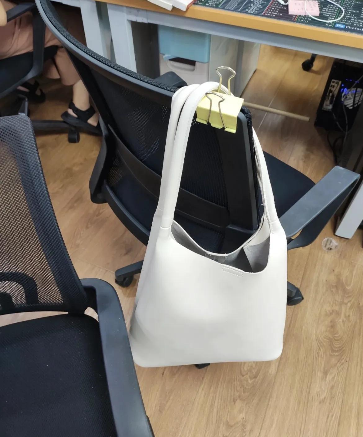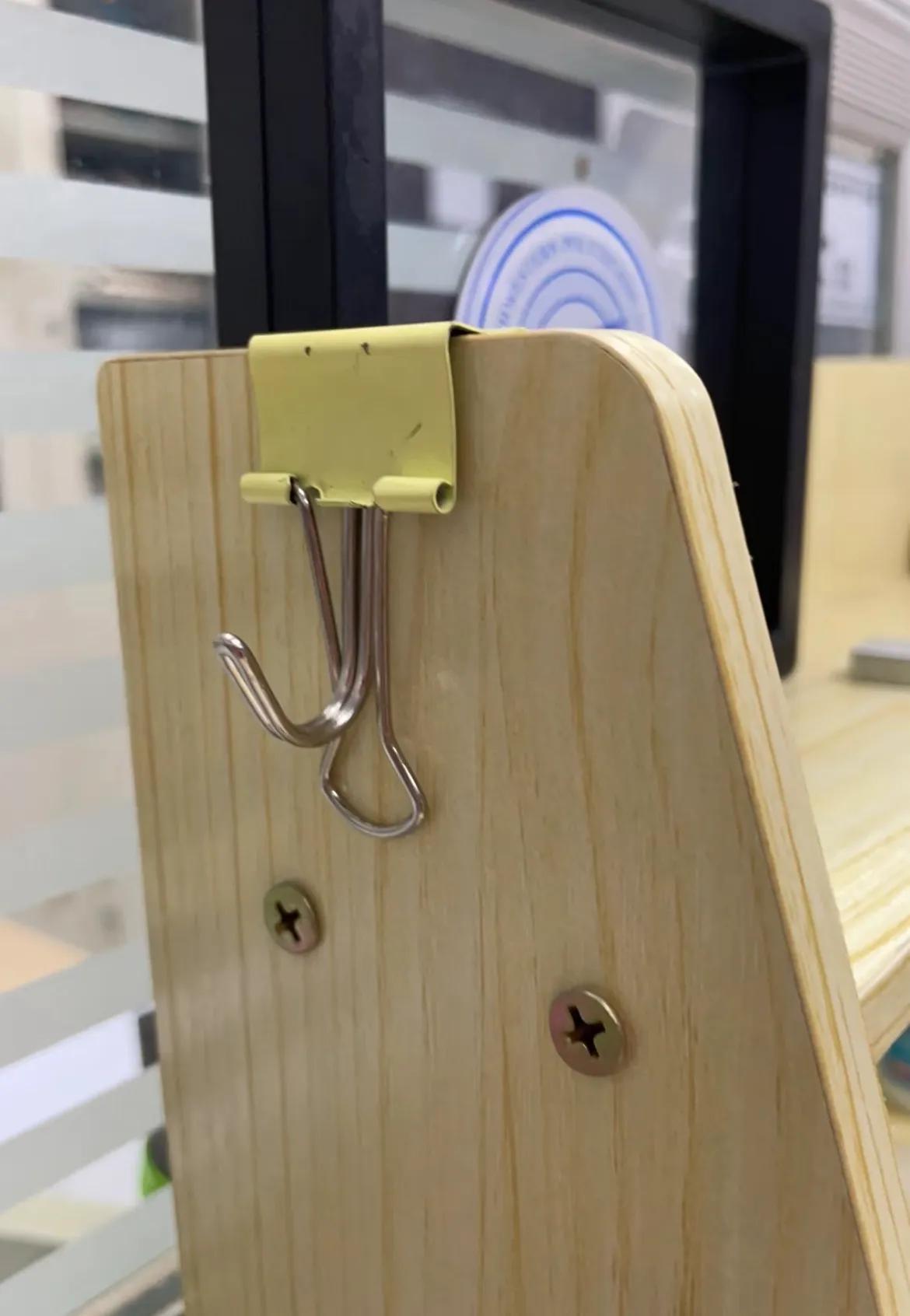 工位沒放包的,也可以用兩個燕尾夾,往桌邊上一夾搞定。