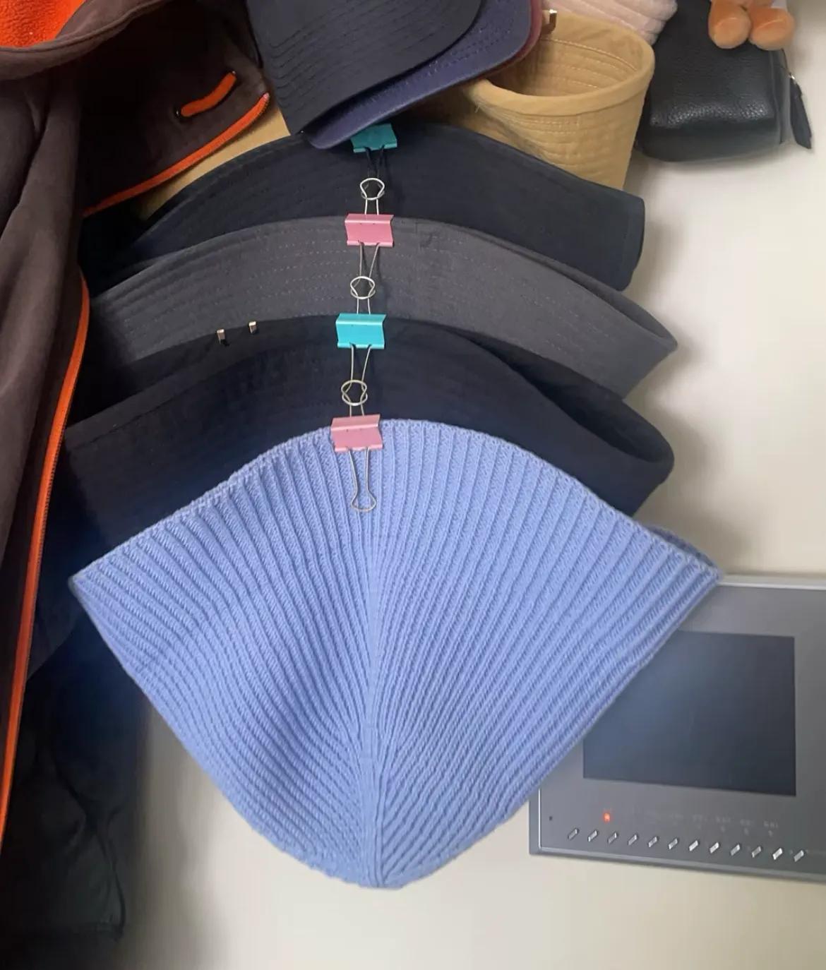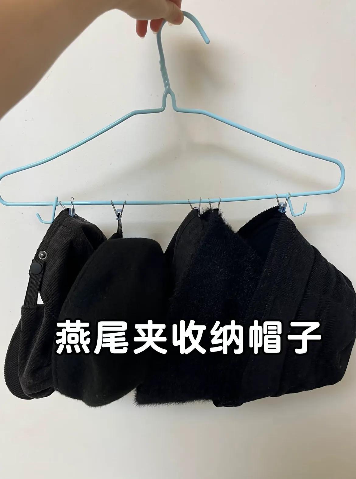 帽子堆在衣櫃裏,不是壓變形就是找不到,要想把它收納整齊,心想着怎麼都得買點工具,不曾想!家裏的燕尾夾就能搞定!