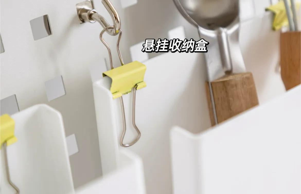 家裏的收納盒,直接放檯面佔地方又不透氣,只要搭配上燕尾夾,盒子立刻“飛上牆”。