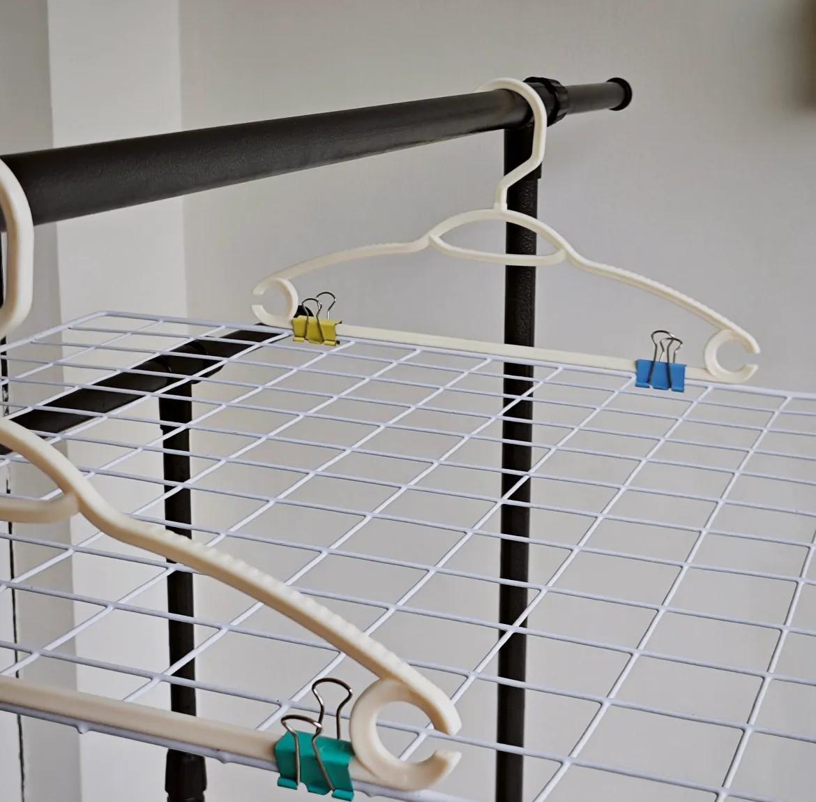 包括家裏閒置的網格,搭配燕尾夾+衣架,還能組合成晾曬架。