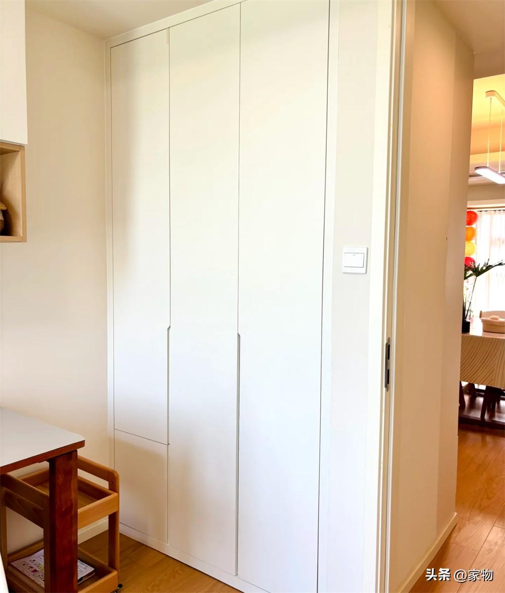 兒童房原本就留出了衣櫃的空間,也就順勢做成嵌入式,與牆壁開關位置齊平。