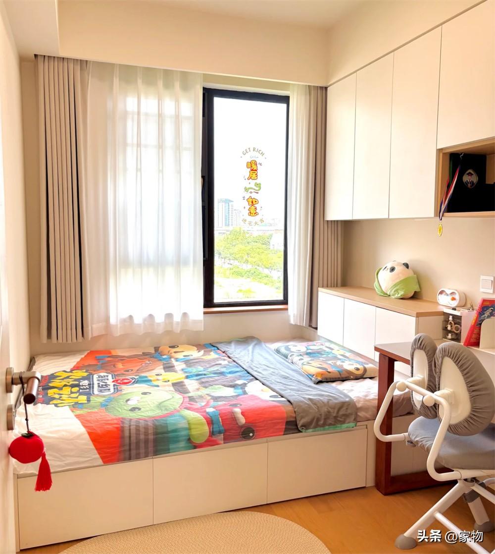 兒童房的面積要更小一些,這裏的做法乾脆是直接選擇了榻榻米牀。