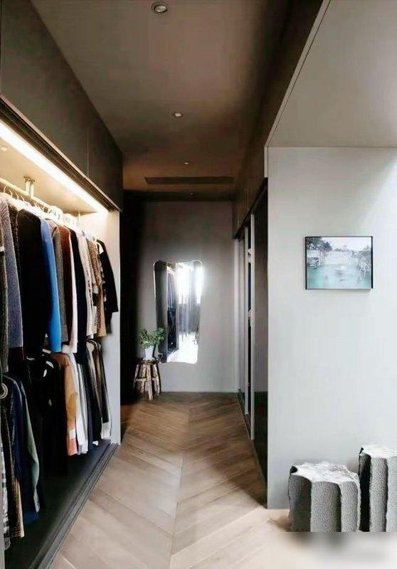衣帽間更有意思:掛衣區做了玻璃門,裏面的衣服疊得整整齊齊,一眼就能找到想穿的——但我得提醒一句,這玻璃門真不是誰都能學的!