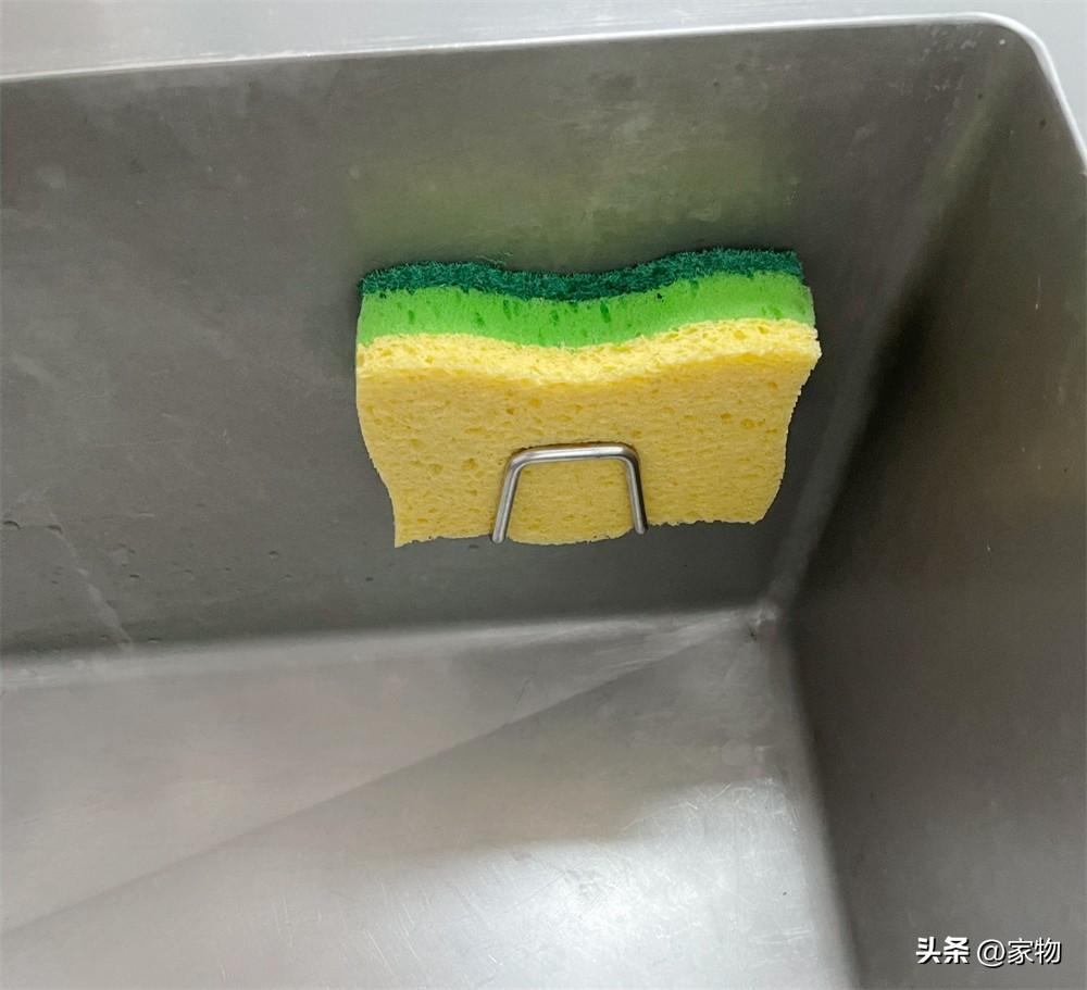 洗碗布用掛鉤掛在水槽內壁上,平時收納起來既不會讓水槽顯得亂,又可以充分起到瀝水的作用,這麼一個小小的掛鉤,就解決了洗碗布收納時容易滴水和不衛生的問題,細節做得十分到位。