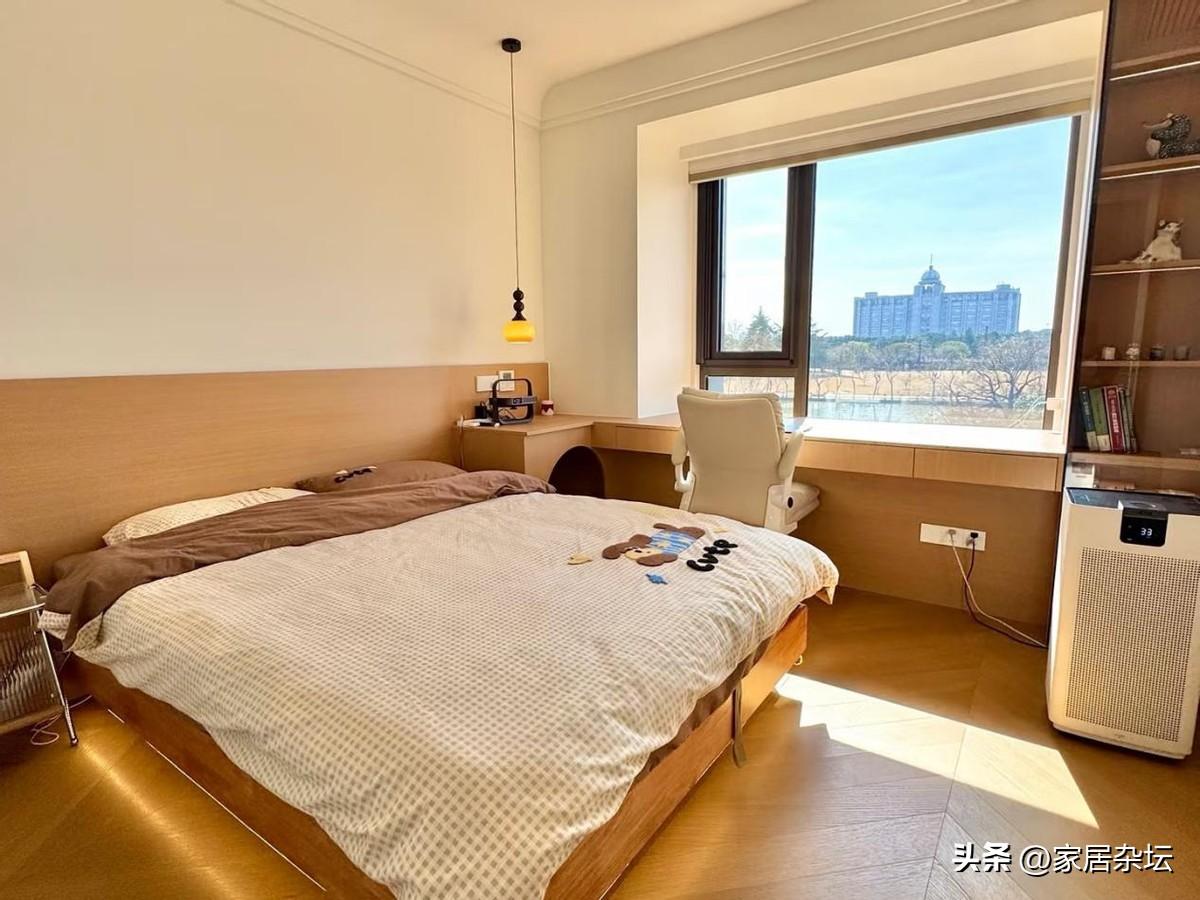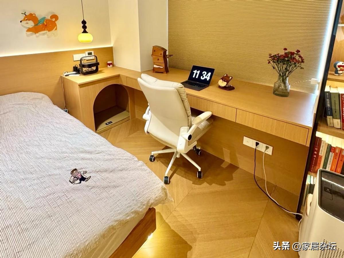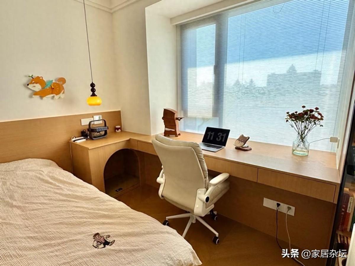 這種做法比單獨購買書桌的費用差不多能省近千塊,而且這個位置自然採光很好,下方的飄窗櫃還可以用來儲物。