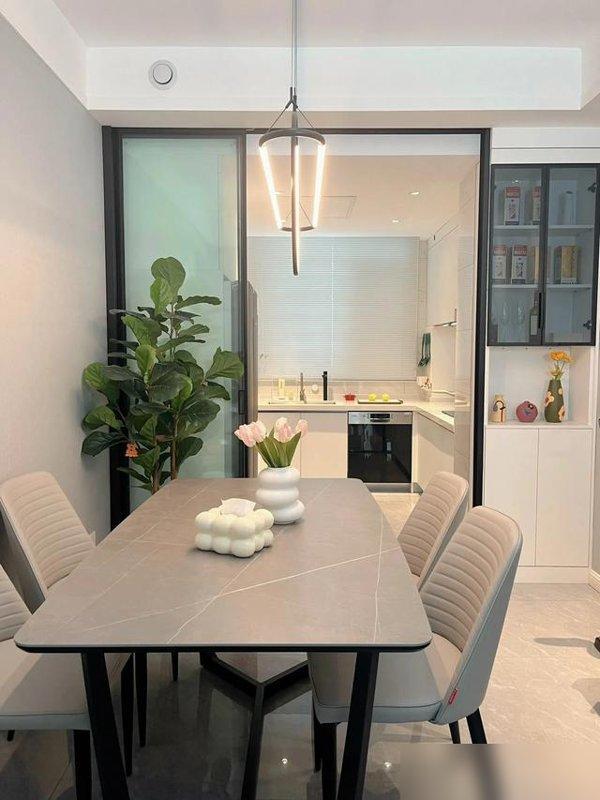 想開放的時候,廚房和餐廳連成片,顯大又亮堂;想關的時候,拉上門防油煙,比全開放或全封閉都香!
