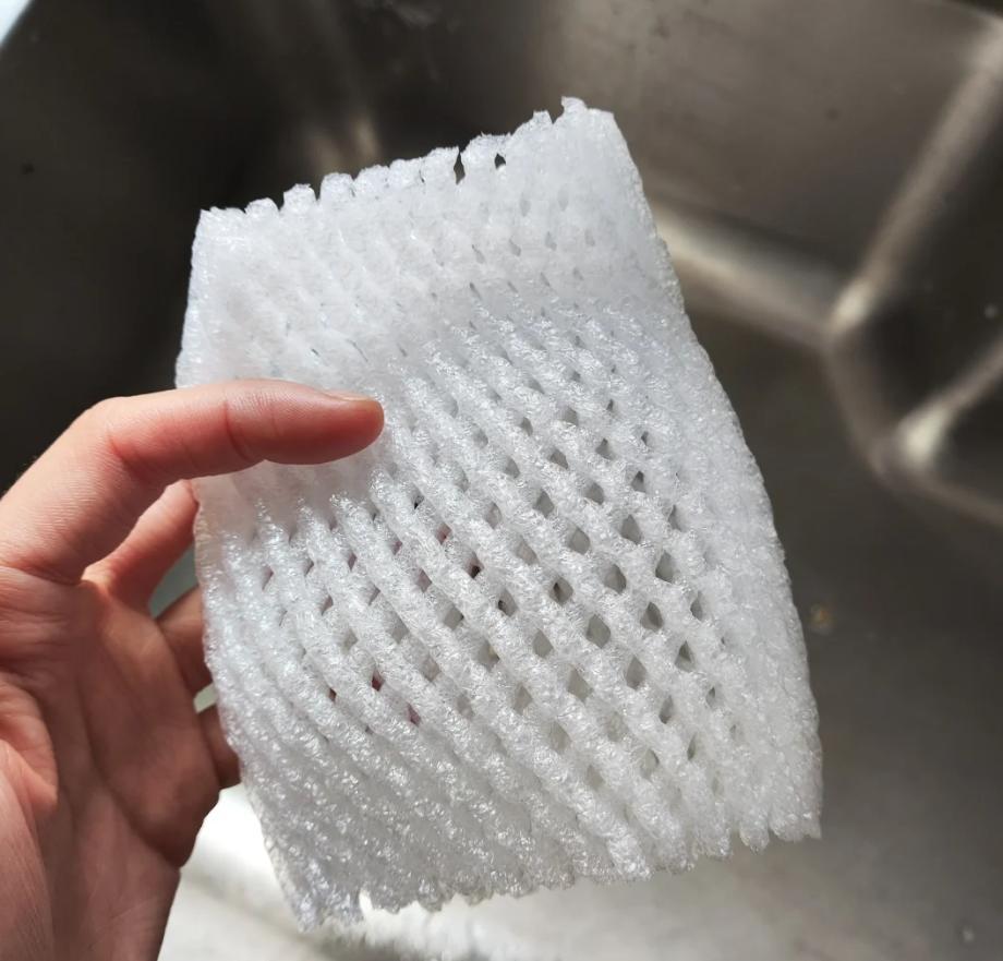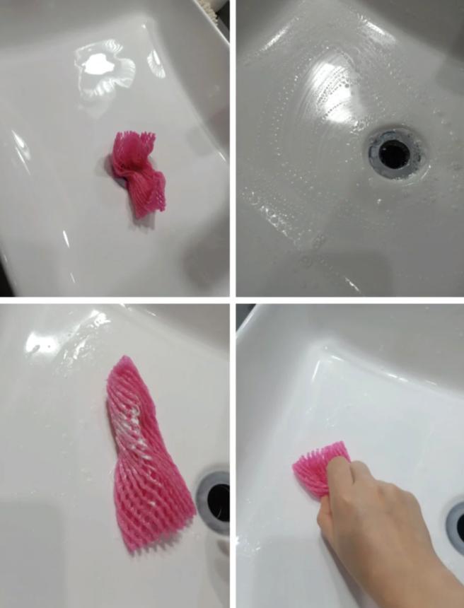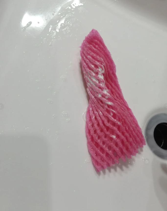 水果網套有的人也叫它“珍珠棉”,不僅柔軟不傷浴室盆,而且沾上點洗衣液、洗衣粉啥的,擦拭浴室盆那叫一個乾淨!
