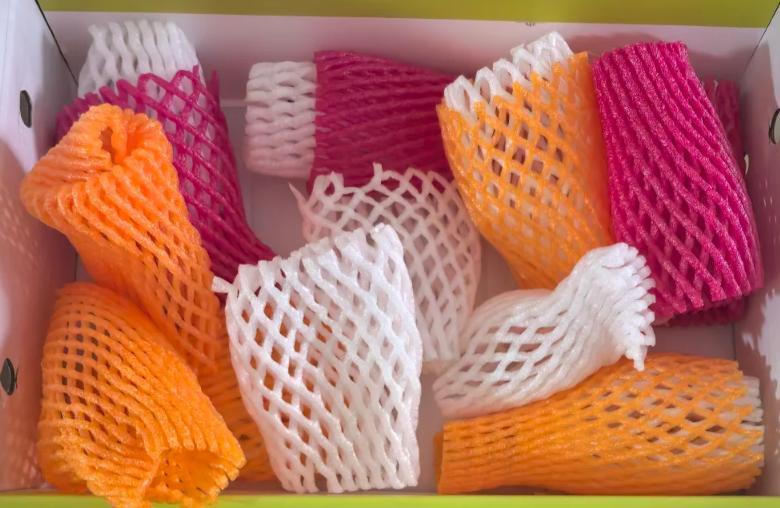 這種“水果網套”,大多數都是白色的,還有的被染成紅色、黃色等等。不過材質都是一樣的,本質上都是“發泡聚乙烯”。
