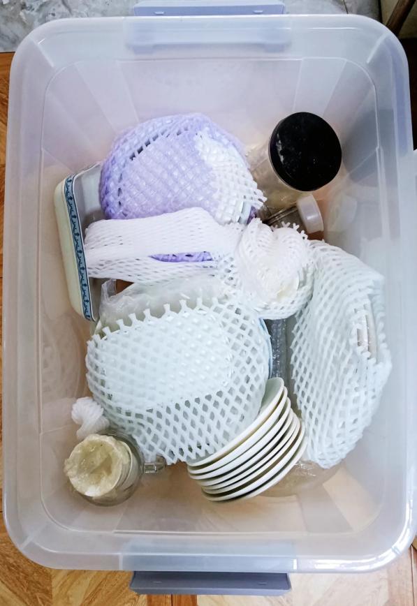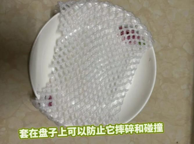 搬家或者挪動餐具的時候,尤其是盤子、碗這一類,很容易碎裂!這時候水果網套又起到作用啦!