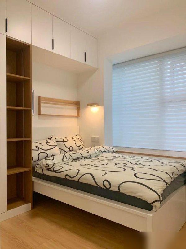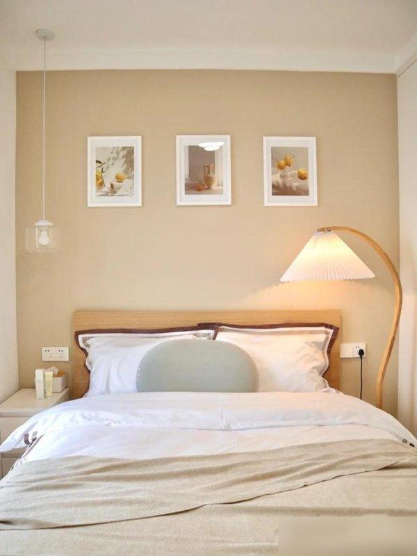 臥室的奶咖色牆像杯溫拿鐵,吸頂燈選了星星點點的款式,晚上開着像躺在星空下。