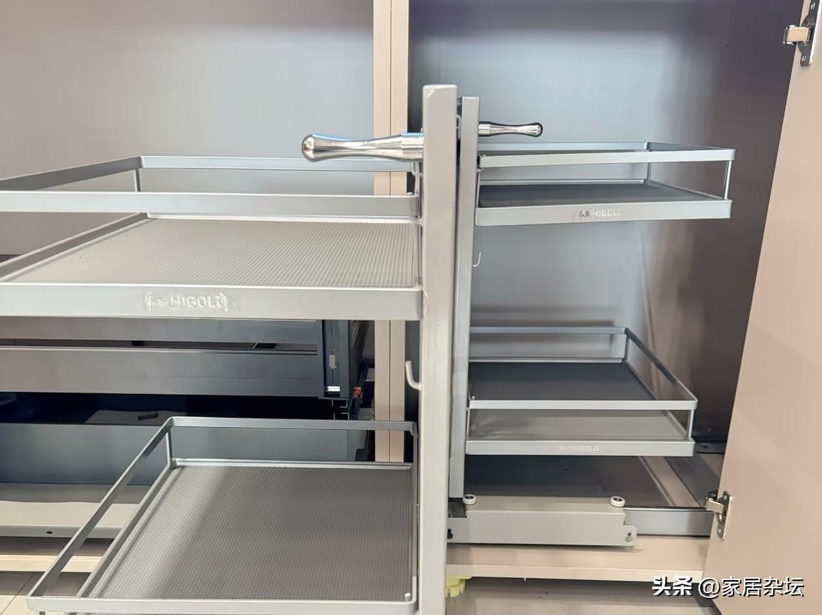 現在,有很多人的做法很明智,在廚房轉角的位置安裝了五角旋轉拉籃。它是通過精密的軌道系統,實現輕輕一拉即可將轉角伸出的物品送到前面來。