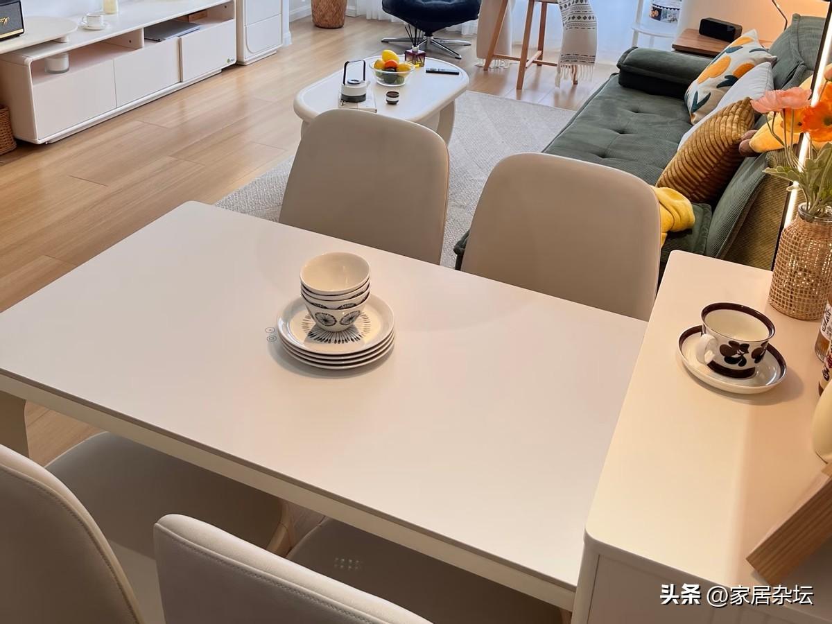 伸縮式餐桌一定要選擇高質量滑軌,確保長期使用不變形。展開以後,要看一下地面是否平整,避免桌子晃、卡頓等。