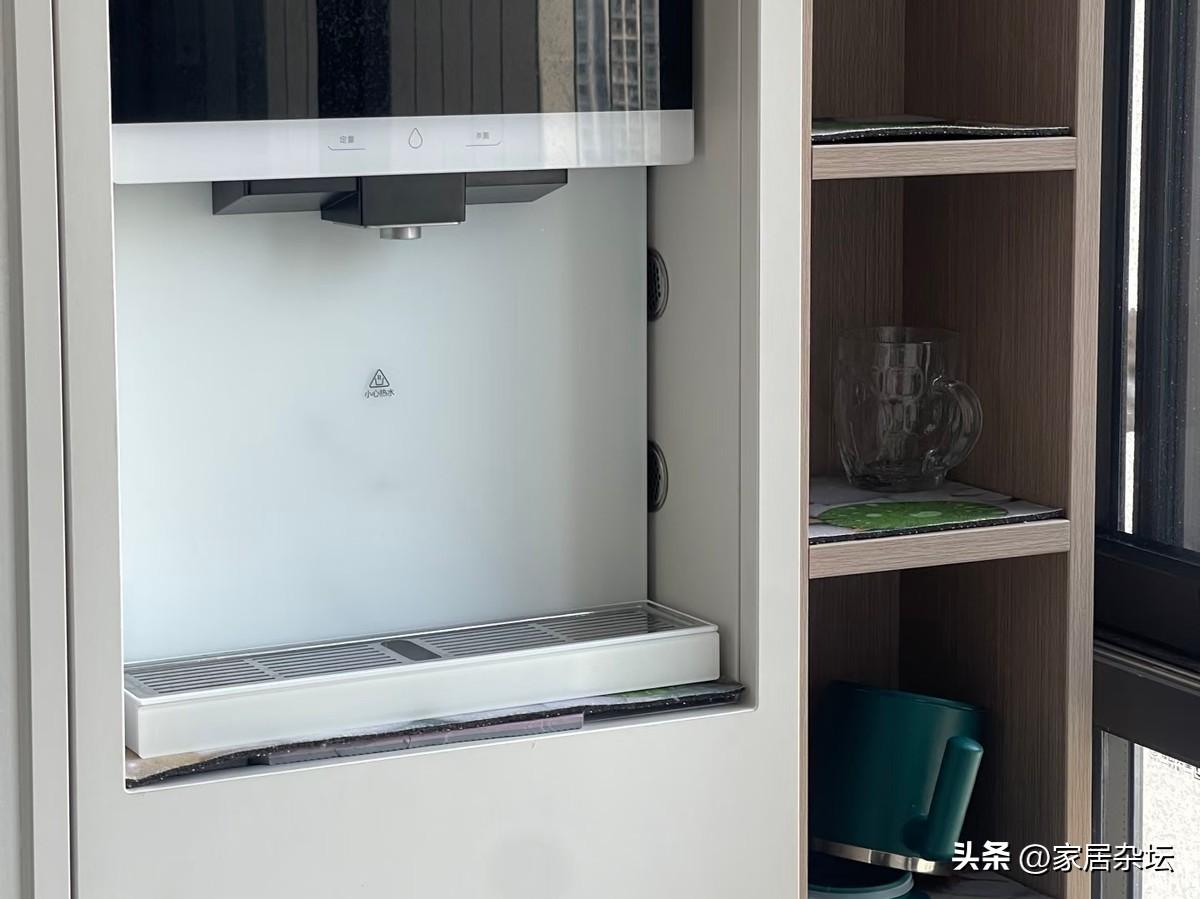 管線機的薄櫃子,讓視覺更整潔,所有的管線都暗藏,牆面也乾淨利落。關鍵的是可以增加收納,收納杯子,茶葉,紙巾等用品都可以。還能夠防止孩子直接接觸管線機,避免帶來危險。