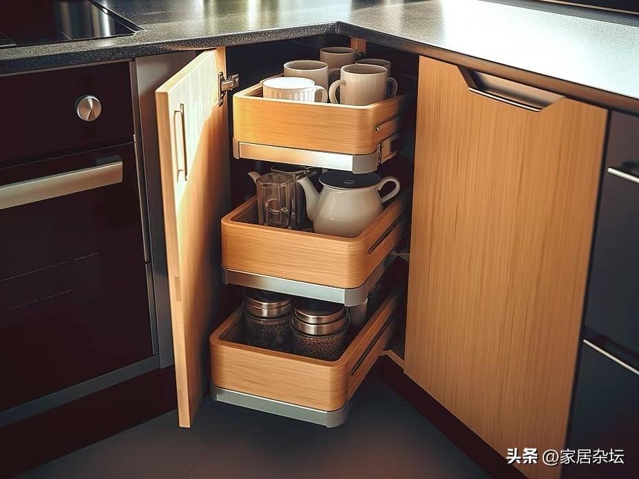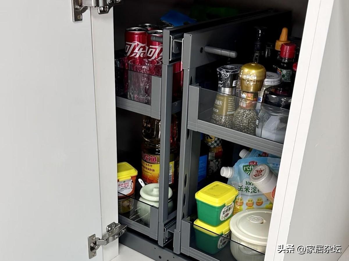 現在有越來越多人堅持做的一個收納,就是廚房的轉角拉籃。可以說,是完美化解牆角的尷尬。
