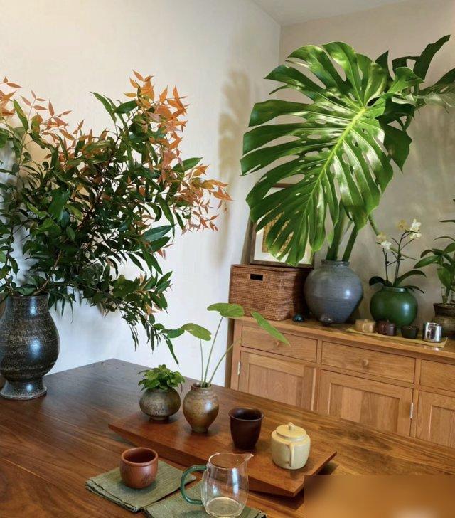 其實好多人問“怎麼把家佈置得高級”,這位小姐姐的答案特接地氣:不是買貴傢俱,是把“將就”改成“講究”——比如用小楓樹代替塑料花,比如把蝴蝶蘭擦得亮亮的,比如給龜背竹選個舒服的位置。