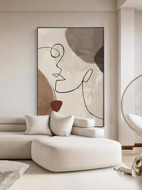 綠植和裝飾畫我也沒逃過——之前擺了盆假花,塑料花瓣都卷邊了,我媽還說“不用澆水多省心”。結果朋友來盯着假花看了三秒,說“你家怎麼像賓館大堂”。後來換成百合竹,葉子細長,深綠色帶點黃邊,放在沙發旁,澆水就能活,偶爾擦一下葉子,比綠蘿有質感多了當;裝飾畫我爸本來要掛 “福祿壽 ” 十字繡 ,被俺拼死攔下 ,換城幅幾何色塊 的黑框畫 ——白底上幾個灰色橙色 的塊 ,掛 在沙後牆上 ,朋友們都說 “咋看咋像美術館展品 ” !