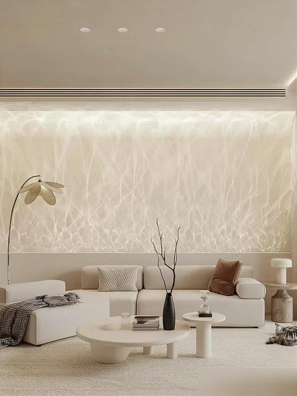 現在晚上開落地燈,暖光灑在牆上,連牆縫都泛着溫柔的光,光腳踩在磚上,連腳底板都覺得“舒服”。你是不是也聽過“冷白牆顯大”的說法?其實冷白牆只會顯“冷”,不會顯“大”,暖白纔是“家該有的溫度”。