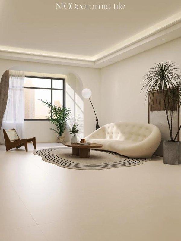 後來自己家裝修,果斷選了暖白色牆頂通刷,沒有踢腳線的那種,再鋪柔光磚——不是亮得能照出人影的拋光磚,是摸上去有點磨砂感的淺米色磚。