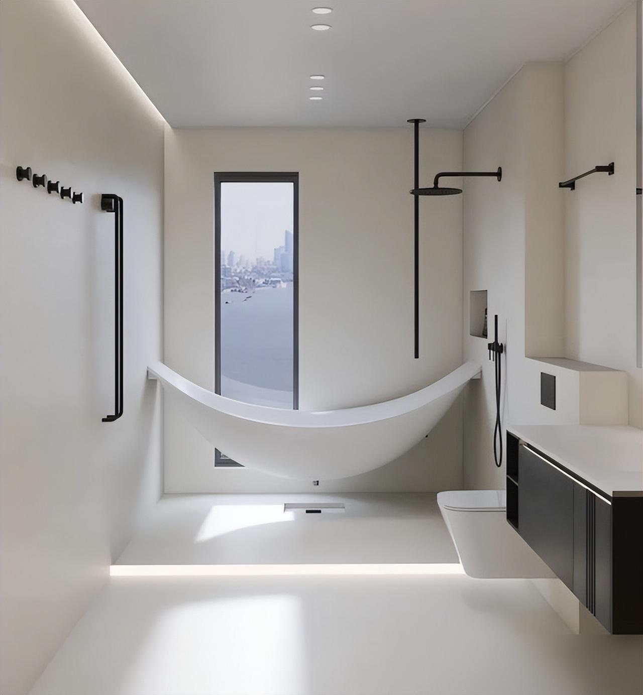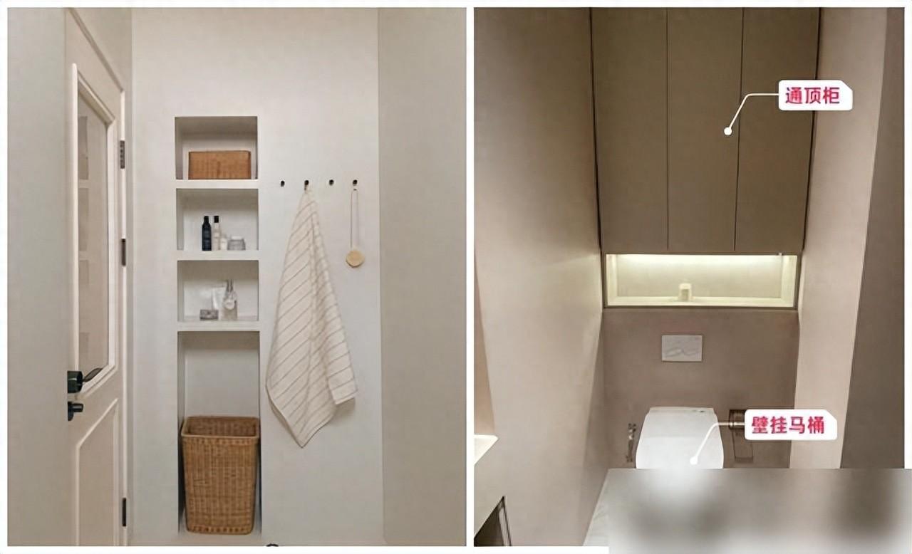 壁掛馬桶沒有底座,再也不用摳縫裏的尿漬;懸空浴室櫃下面能放髒衣籃,連衛生死角都沒有;入牆式花灑藏起水管,牆面光禿禿的特別清爽——你有沒有過蹲在馬桶旁邊擦底座的崩潰?