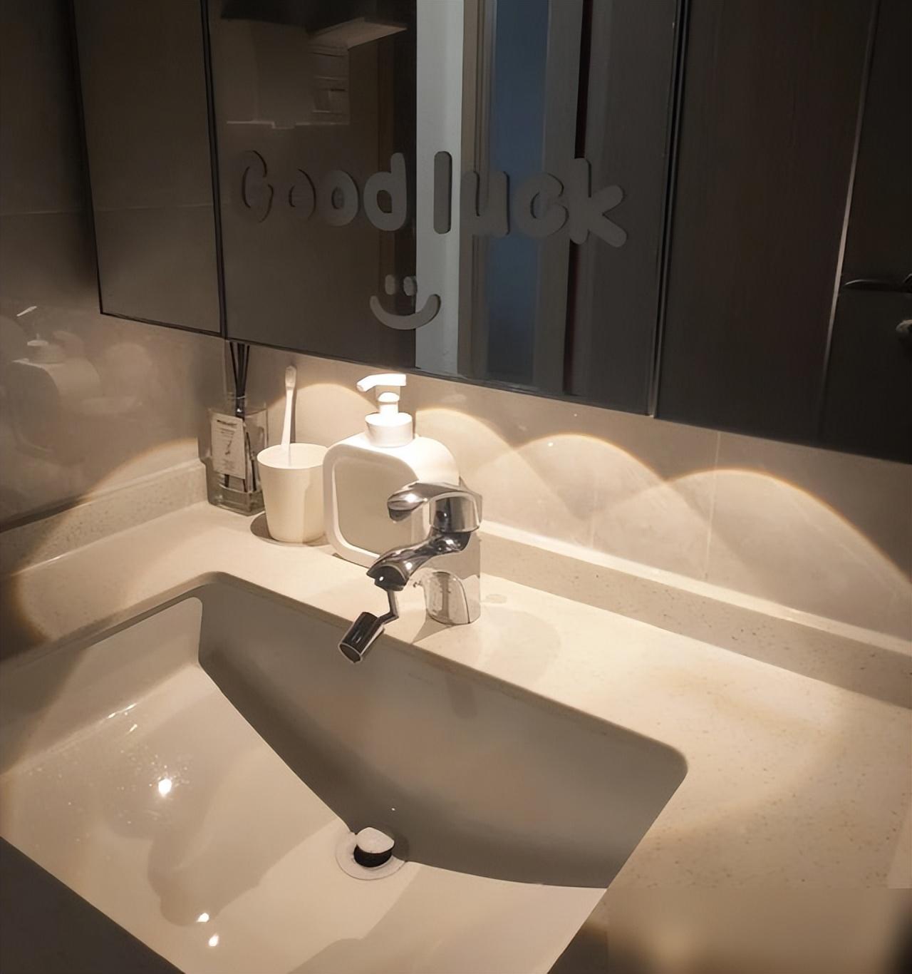 別以爲衛生間只要亮就行,朋友家鏡櫃下面裝了線性燈,晚上起夜不用開大燈晃眼睛;馬桶背後藏了射燈,照得牆面肌理超有質感;淋浴區裝了暖光線性燈,洗澡的時候像在酒店spa,你說這是不是把“儀式感”刻進了衛生間的骨子裏?