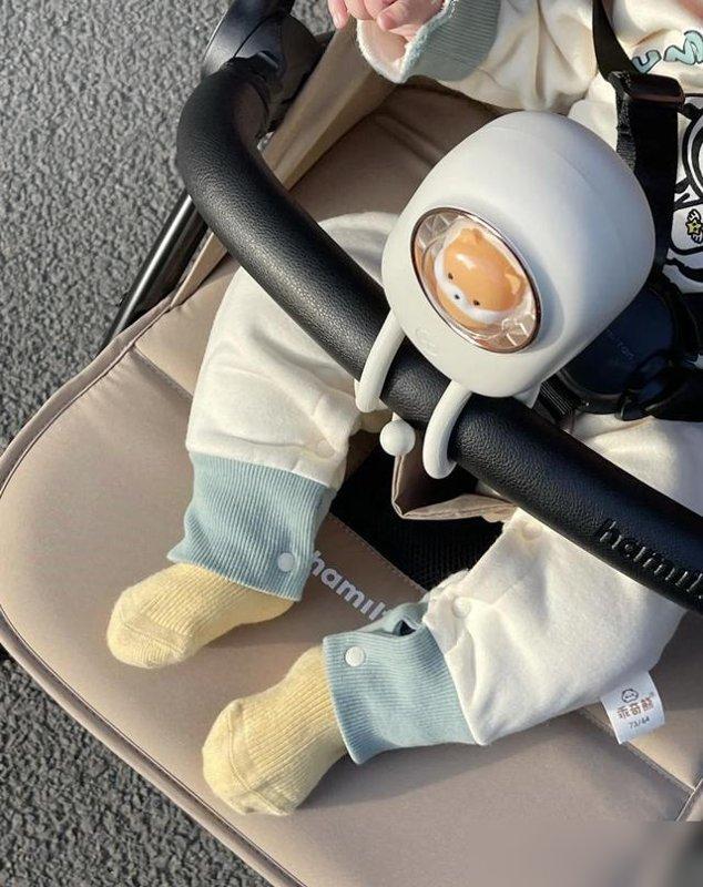 出門帶的小風扇也超好用——能鎖在嬰兒車、揹包、甚至奶茶杯上,我家娃上次去公園,坐在推車裏吹着風,連哭鬧都少了。