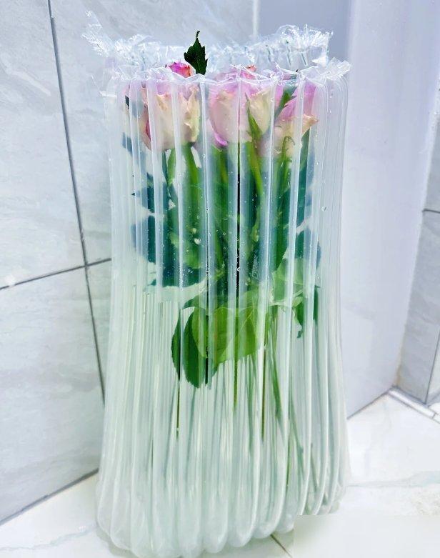 突然想起網上說豎條氣泡墊能醒花,趕緊翻出攢的氣泡墊,剪成長條捲成筒,中間倒點溫水把花莖插進去——倆小時後花“活”過來了,花瓣展開得比剛買時還豔,連花莖都挺得直直的。我拍了張照發朋友圈,評論區全是“求教程”,我說“材料是快遞泡沫,不要錢”,大家都驚:“早知道不扔那些氣泡墊了!”
