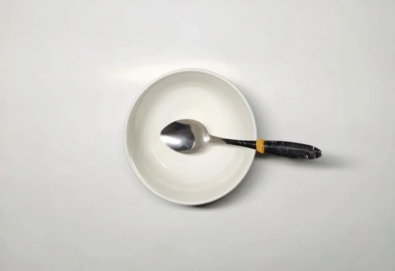延及勺子,喝湯的時候,勺子老往碗裏溜,一通撈。