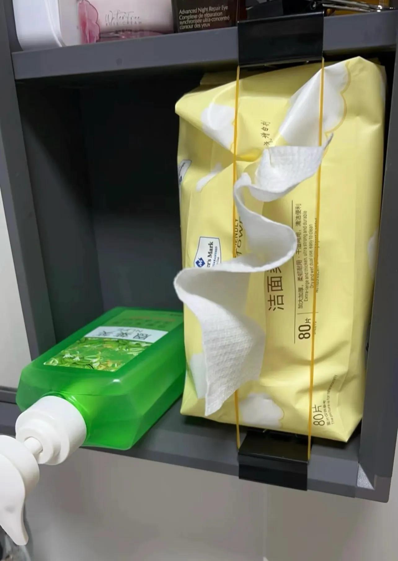 有的洗臉巾偏厚,平放在那不好抽,住友@妄想明天就退休,靈機一動,那就讓它豎着抽!