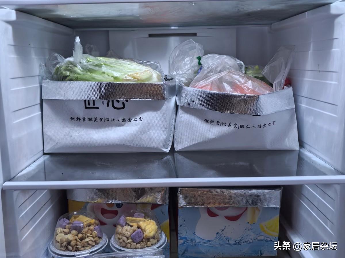 使用外賣保溫袋收納冰箱的食物,可以減少冷氣的流失。一定程度上能夠幫助冰箱穩定住溫度,可以降低能耗。
