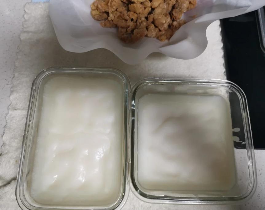 4.過濾出來豬油後,密封,放到冰箱冷藏,第二天就成雪白雪白的豬油啦!