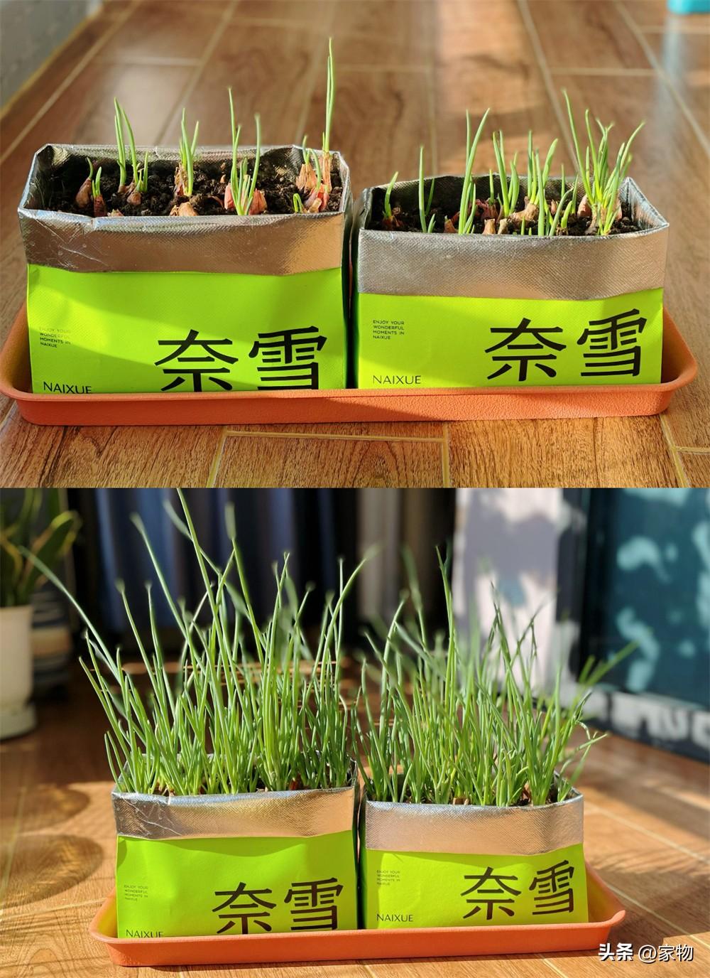 一方面,這樣做沒什麼成本,種大蒜苗甚至可以一次一換盆;另一方面,大小也正好合適,不會太過佔地兒。