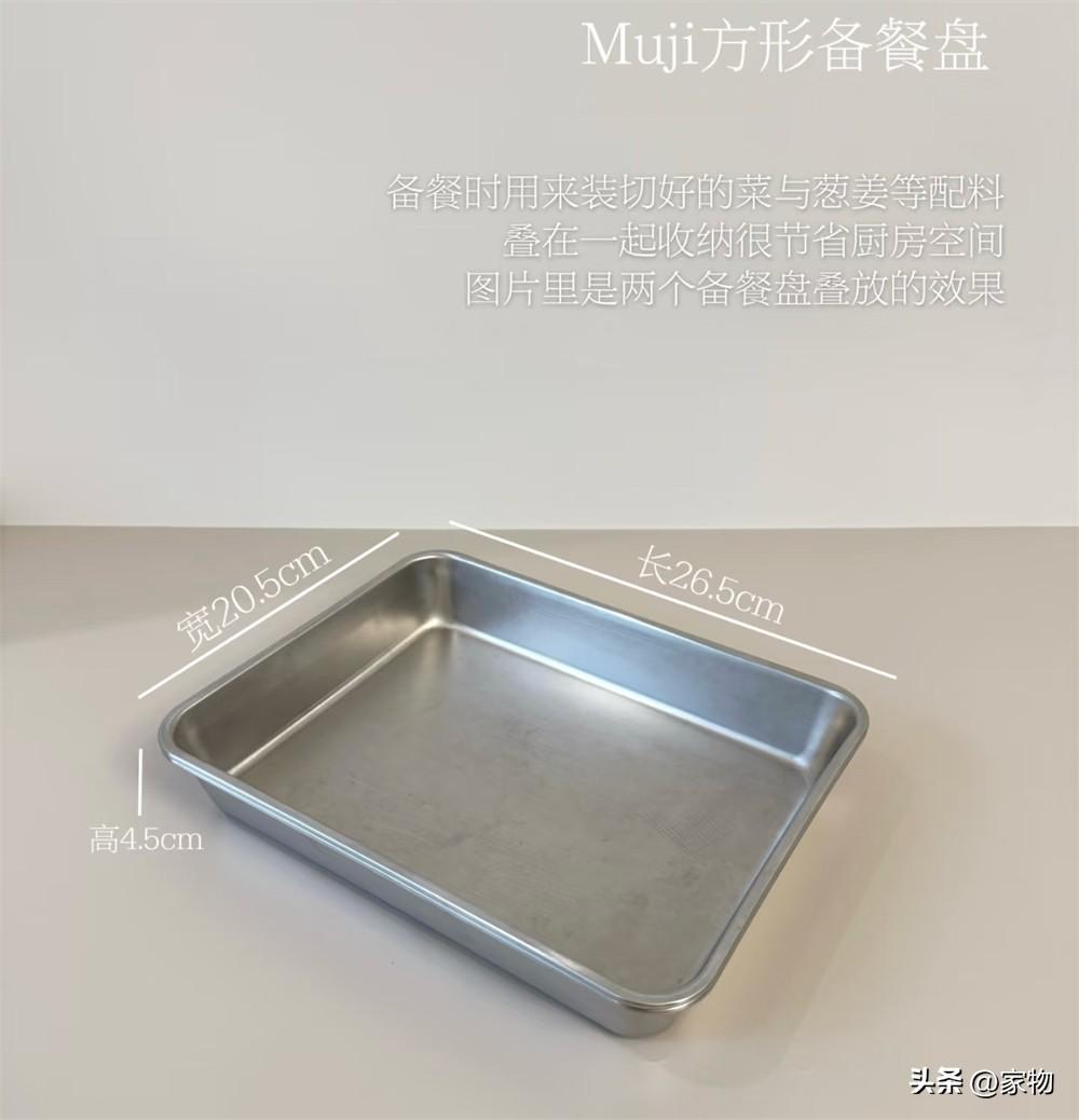 啞光不鏽鋼質感的備餐盤,我選的這個尺寸不大不小,有26.5釐米長,特別適合每天做飯時放提前切好的蔥薑蒜等輔料,烹飪時直接從裏面取用,方便的同時也不易弄髒檯面。