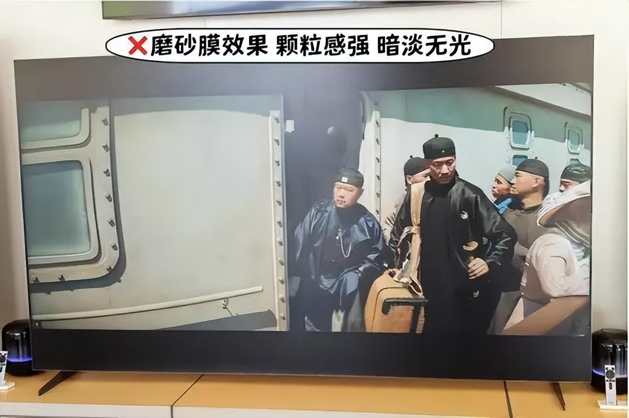 第一種是磨砂屏,原理很簡單,就是在屏幕表面做一層類似砂紙的磨砂膜,把直射的光線打散成漫反射。這種技術成本最低,應對強光直射時能明顯減少刺眼的光斑,但缺點也很致命,畫面會變得模糊發霧,看4K高清內容就像隔着一層紗窗,暗場景泛白嚴重,失去了原本的畫面質感。