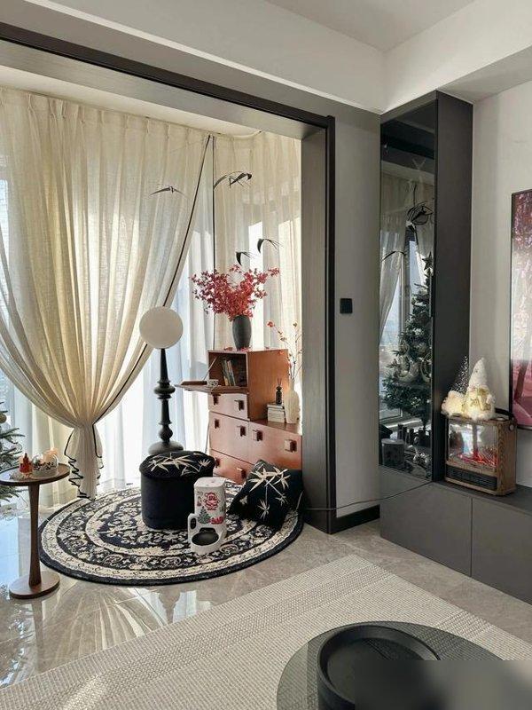現在年輕人總說“極簡不是擺爛”,我算摸出點門道:選顏色就像挑奶茶,半糖不甜膩,溫溫的剛好。米白沙發不是沒考慮過耐髒嗎?買的時候特意選了防潑濺面料,上次奶茶灑上去,拿紙一擦就沒痕跡;灰藍窗簾不是太暗嗎?選了兩層,外層透光內層遮光,白天拉開像給房間蒙了層柔霧,晚上拉上能把路燈的光全擋在外面,熬夜看劇也不晃眼;木色傢俱我沒選深胡桃,選了淺橡木,自帶點陽光曬過的暖,不像深色那麼壓人——這些“不搶戲”的基礎款,反而能裝下所有生活的碎片。