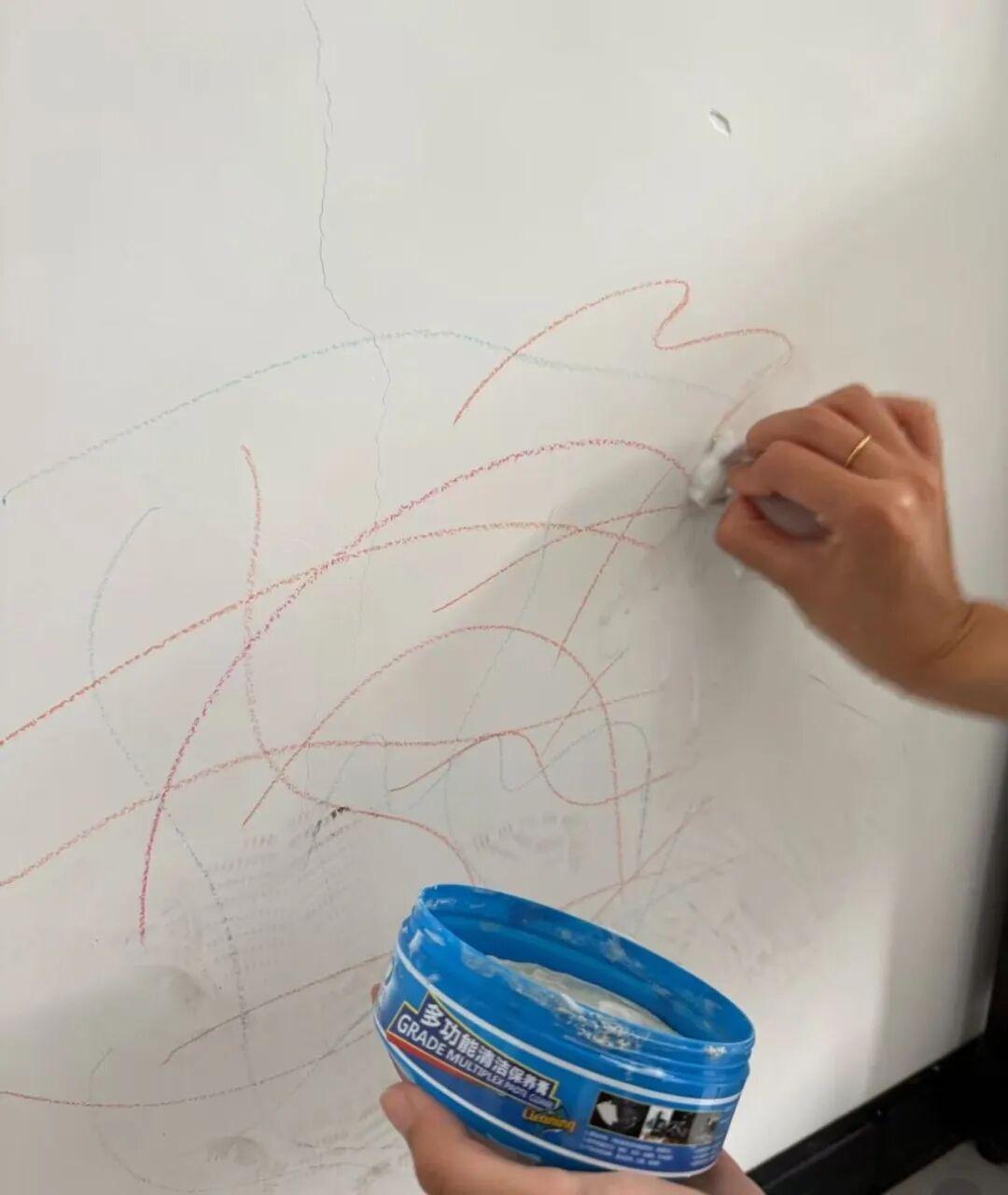 這款清潔膏對牆上鞋印、發黴、髒污還有孩子的鉛筆、蠟筆破壞,都能輕鬆去除。