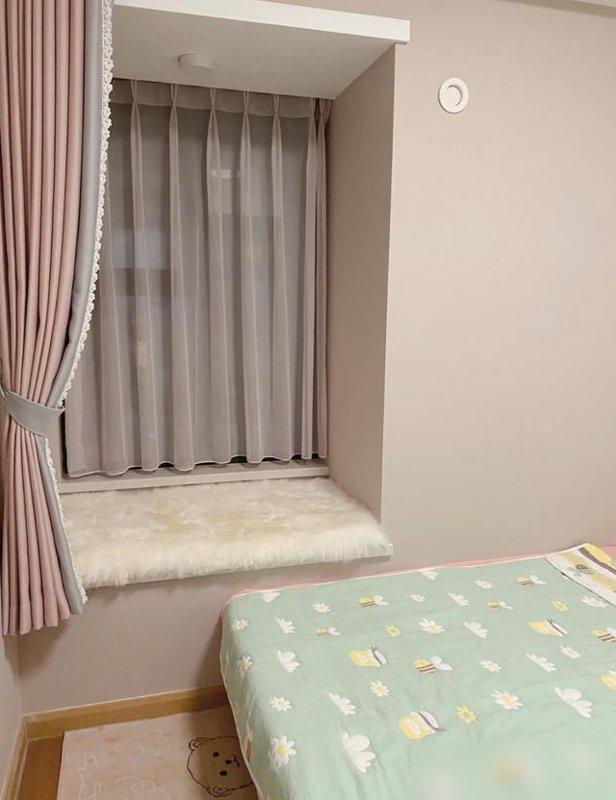 主臥的設計更懂女人:衛生間邊做了12cm薄櫃當梳妝檯,飾品、化妝品都塞進去,封閉式不落灰;兒童房沒做榻榻米,兒子的房間先放鋼琴和書桌,等大了再添牀——這不比固定死的榻榻米靈活?