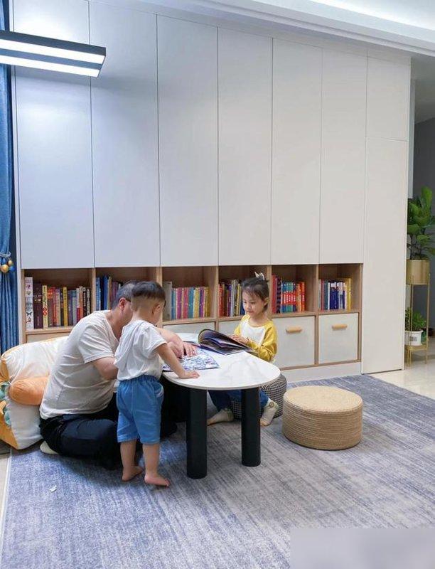 南陽臺的設計更戳人:鋪竹編地墊做休閒區,光線好得能曬到書本,孩子沒事兒就蜷在這裏翻繪本——這不就是爸媽想要的“自主閱讀”場景?