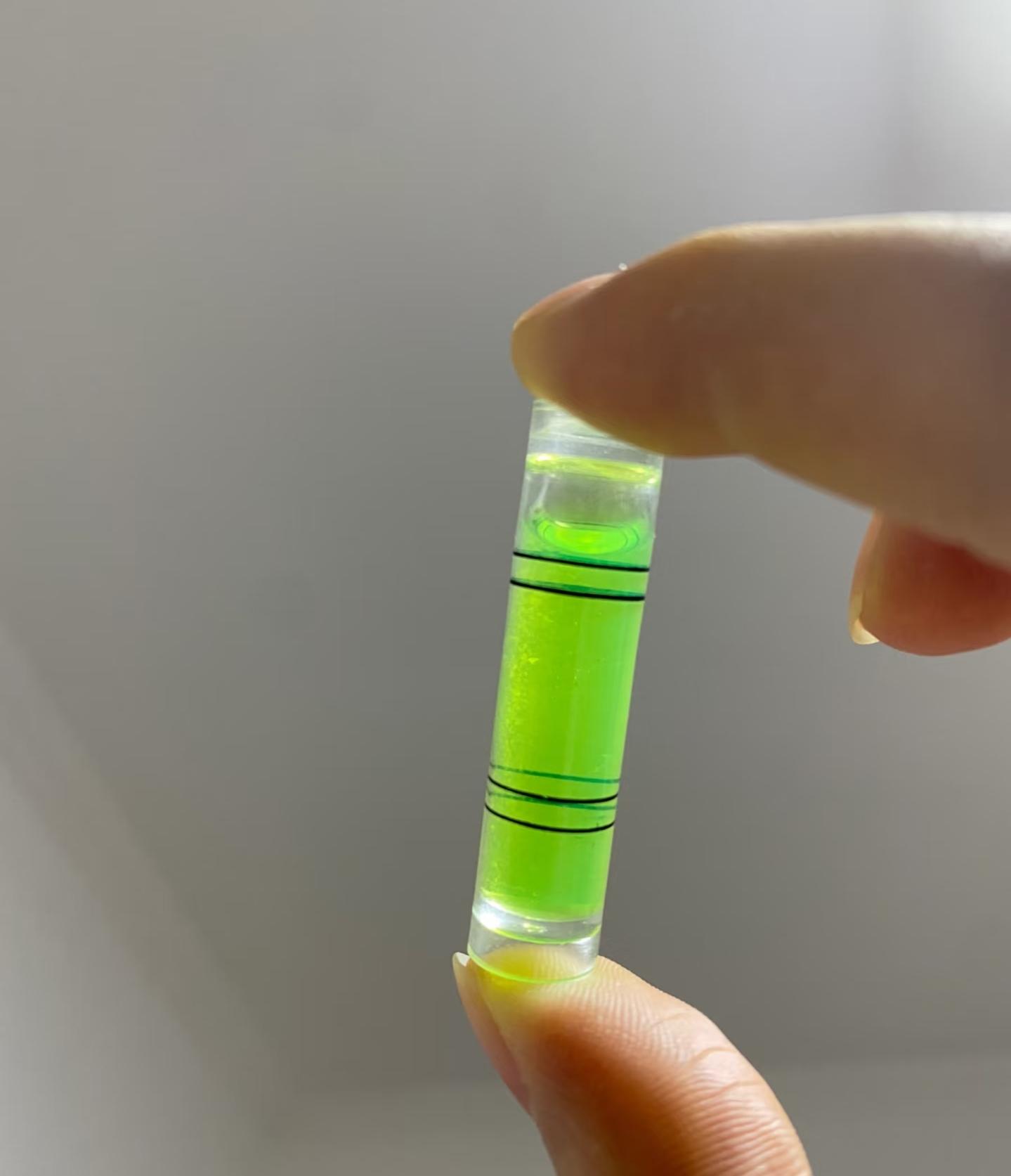 用法特簡單:往相框頂上一放,看中間的氣泡居不居中,稍作調整就行。