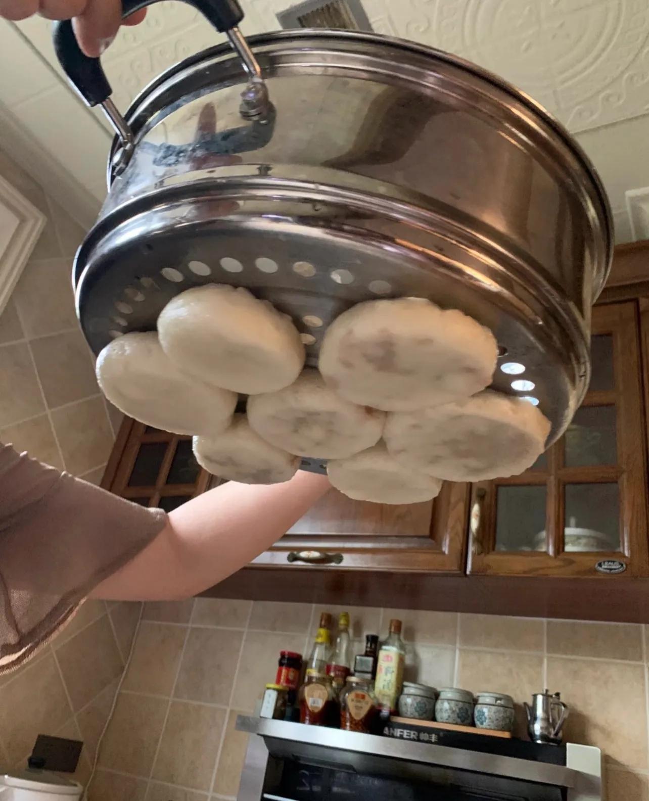 反應過來以後笑得老闆以爲我在摸魚看綜藝。其實是蒸鍋順序放錯了,導致蒸好後全給黏上頭了,這章魚餡的吧,吸得這麼牢!