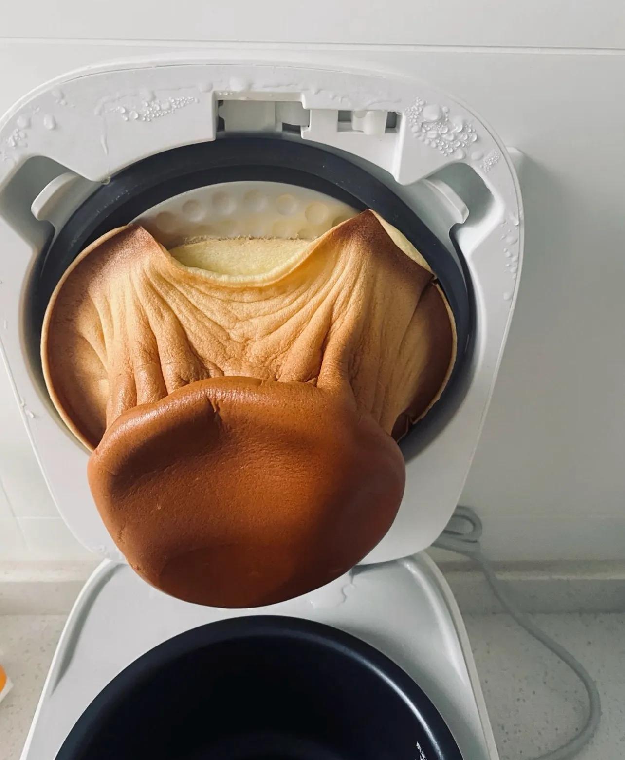 結果還沒開蓋就知道不妙,排氣口口吐白沫,蛋糕,你不要亖啊!