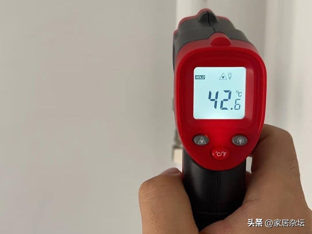先測供回水溫度,確認是否達到暖氣片的供水的基本要求。