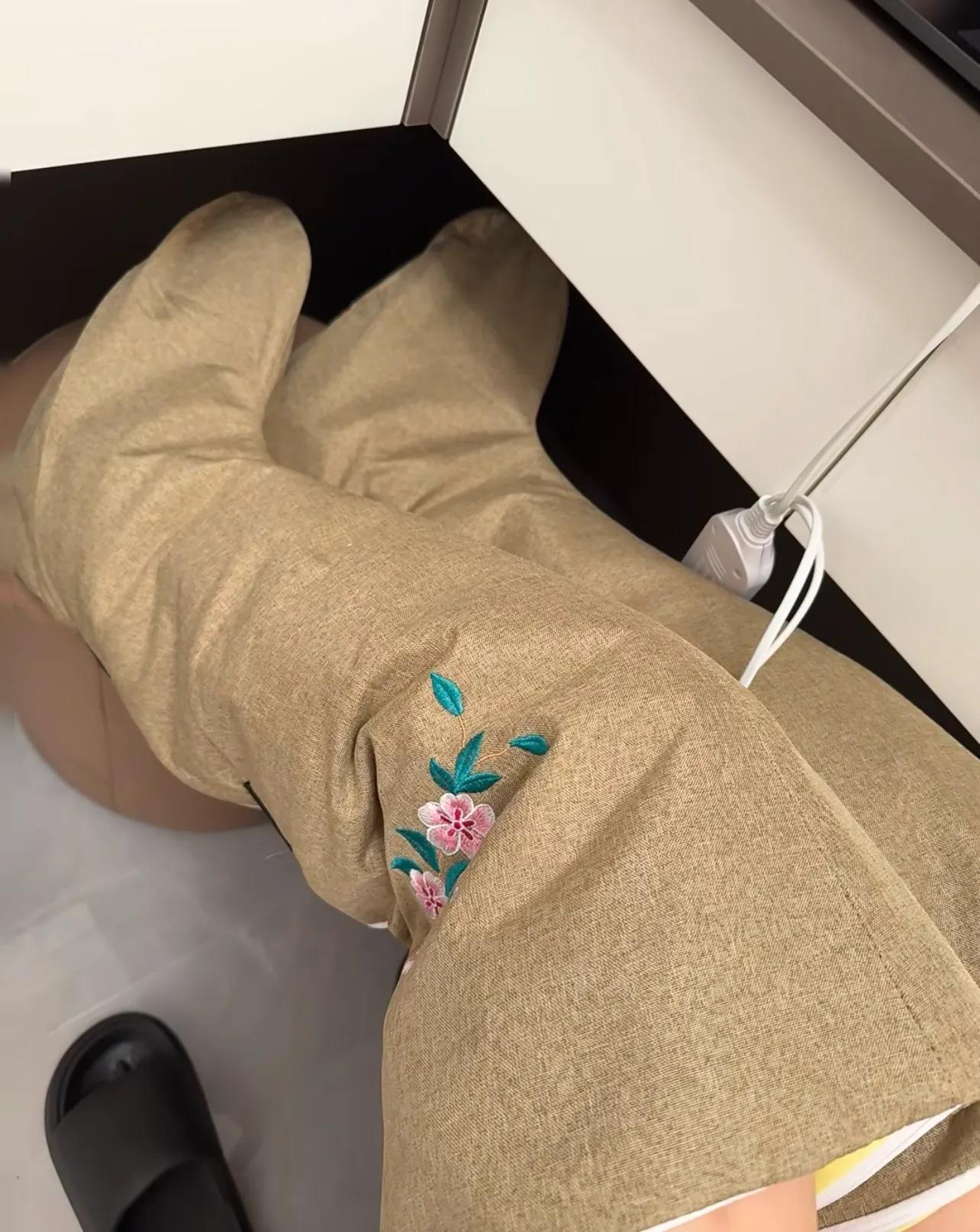 還有艾灸靴,帶電熱加熱的艾草墊,頗受腳冰涼、老寒腿人士的熱捧。