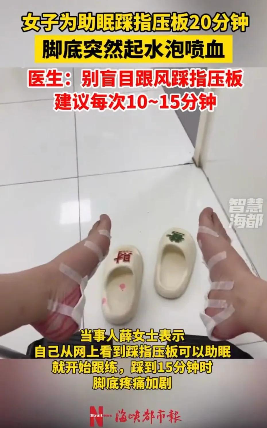 可實際效果卻無從驗證。甚至由於痛感過度刺激,還會給人造成傷害,比如上海一女子就信了助眠功效踩了20分鐘,結果直接腳底血崩!