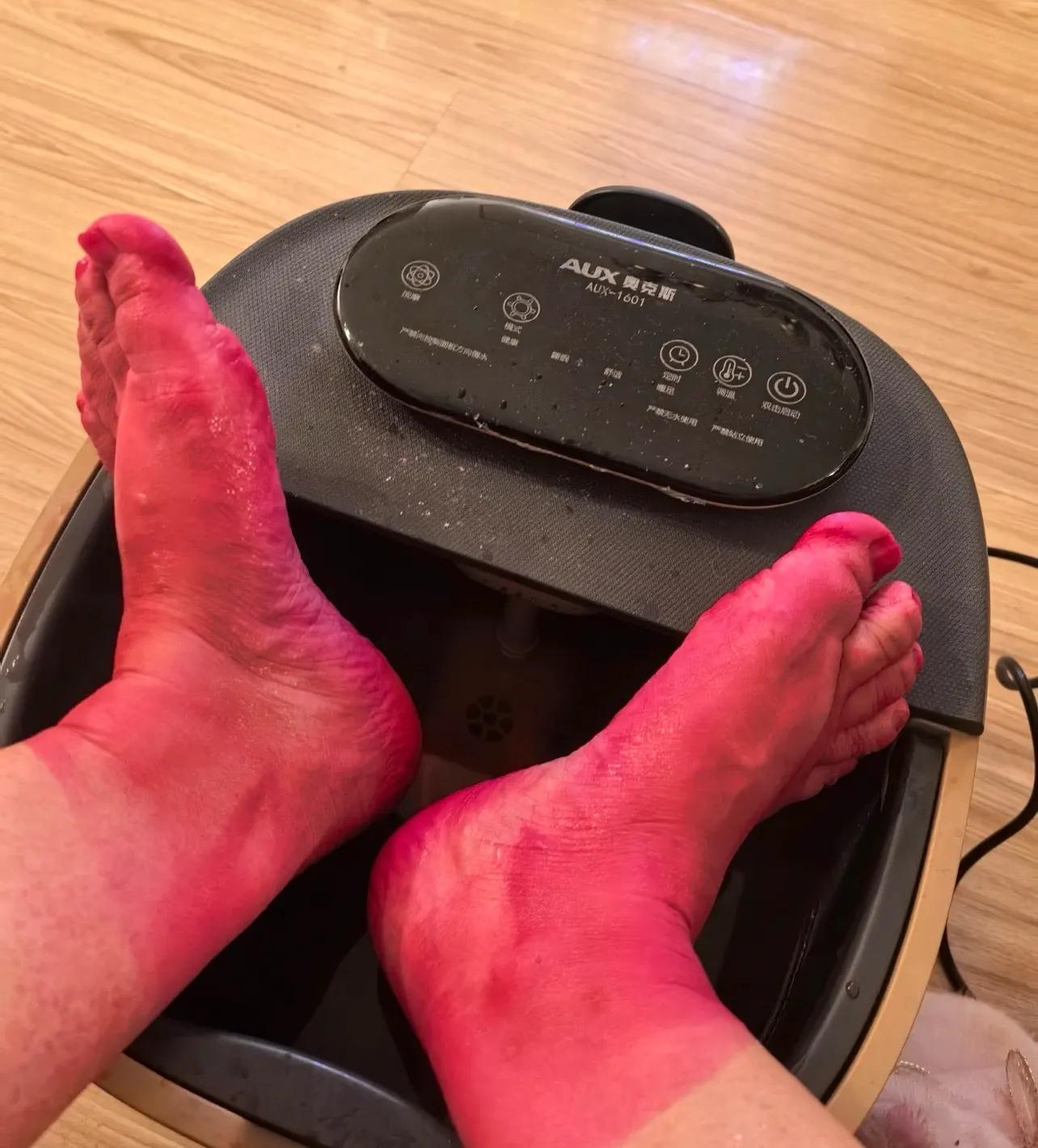 更有離譜的讓人想笑的,水溫一高,泡腳桶掉色,直接來了個“足部美紅”。