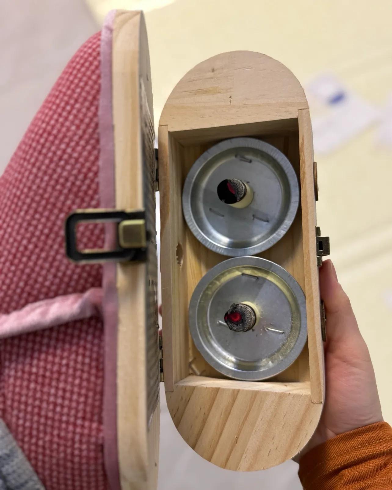 鞋底自帶一個燃燒室,把艾條插在上面,點燃,關好,活脫脫一個東北大炕的微縮復刻。