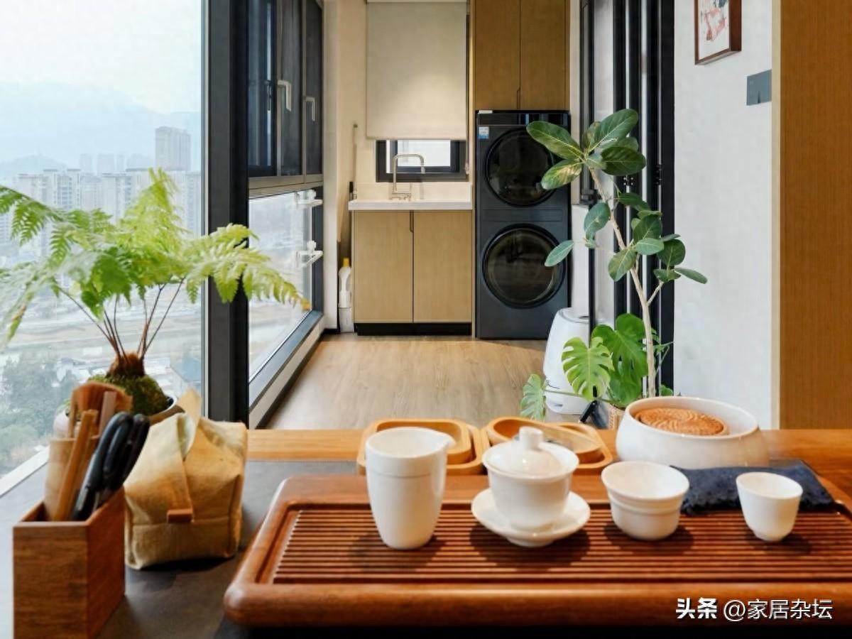 入住一年多,陽臺成了家裏使用率最高的空間,既是休閒區,也是健身區,還是綠植花園。晾曬時,電動晾衣架緩緩降下;平時收起,整個陽臺啊互不干擾。