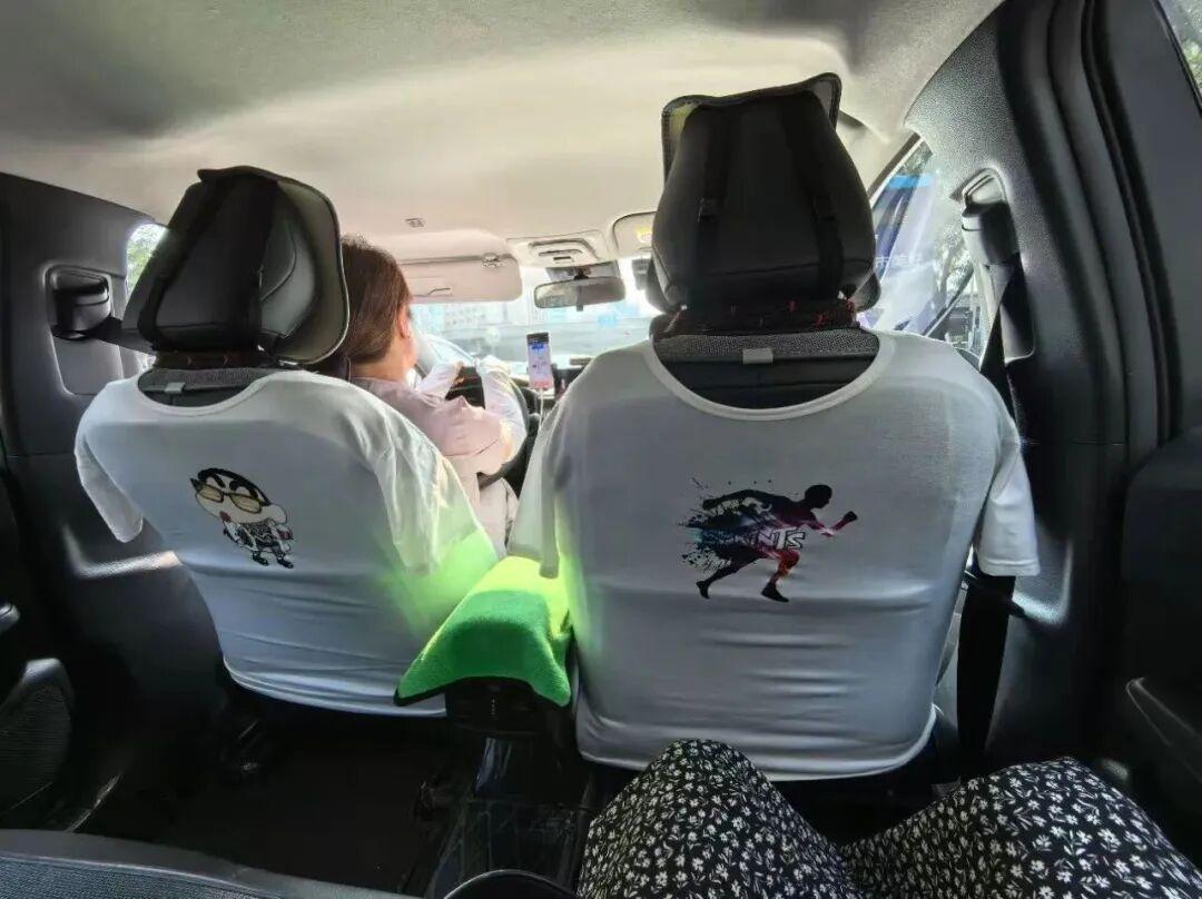 然後,又刷到更聰明的網友,竟然車座椅也能能套舊T恤解決,雖然醜了一些,但是也不得不說:這屆網友鬼點子是真多。