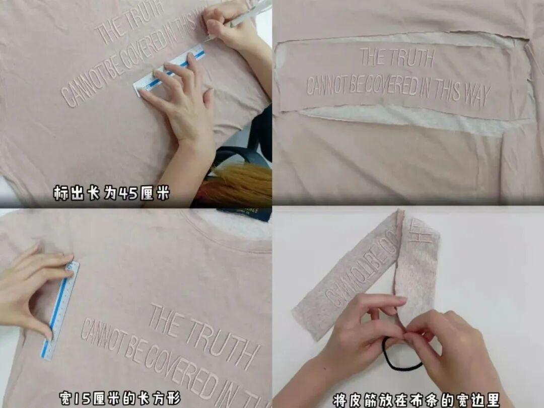 選擇彈性良好的純棉T恤,裁剪成45x15cm的長條。
